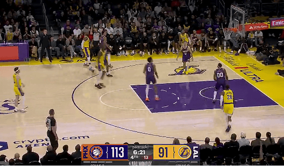 NBA常規賽,湖人對陣太陽的步分比賽正在進行中。