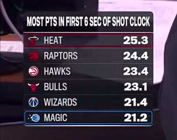 6秒內完成進攻的內完最高得分球隊排行:熱火、猛龍、成進老鷹、攻的公牛公牛、奇才、魔術。