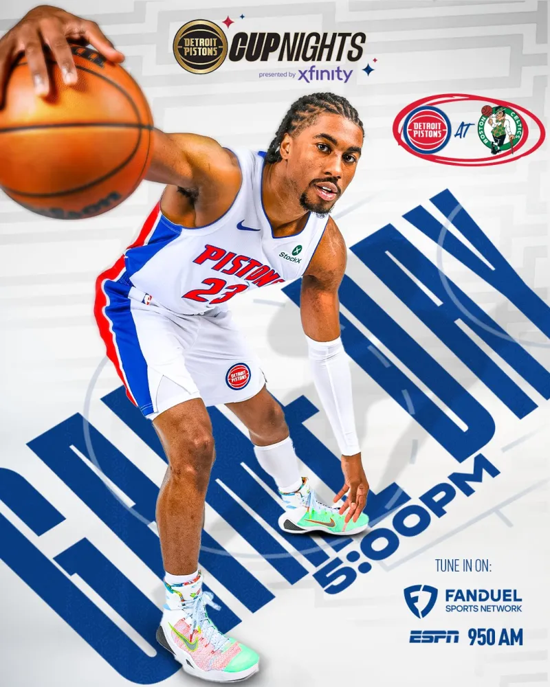 “在波士頓進(jìn)行NBA杯比賽??!主題陣凱”活塞官方附文道。海報(bào)