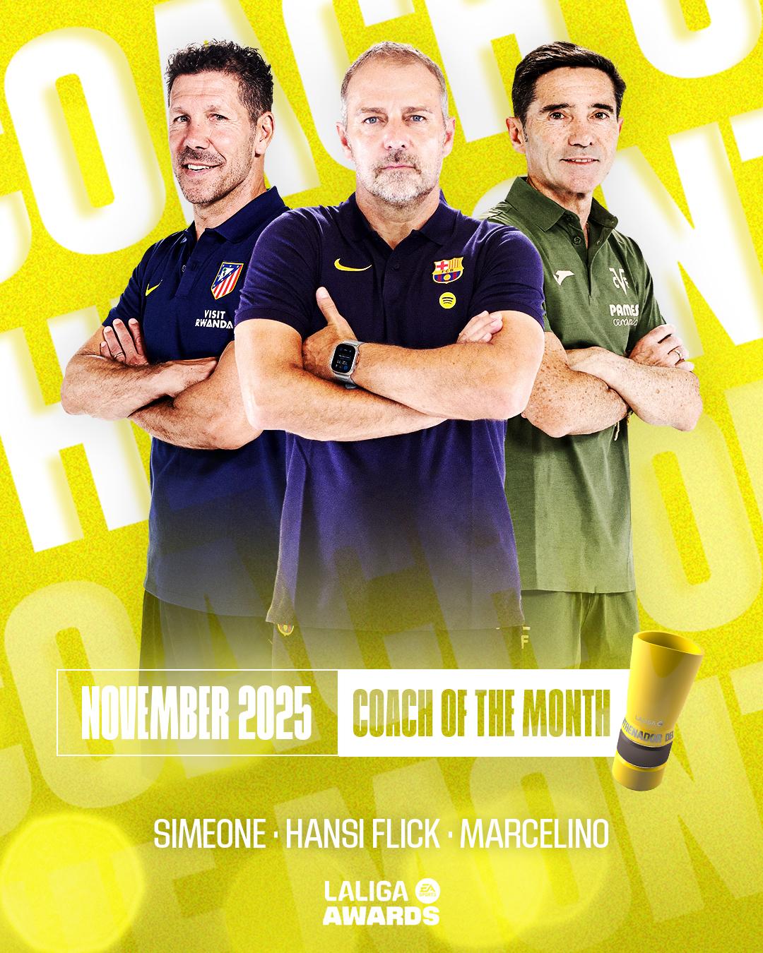 虎撲11月26日訊 西甲官方公布聯(lián)賽11月最佳主帥候選: