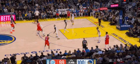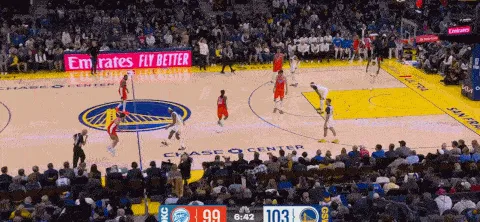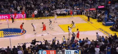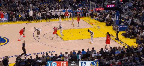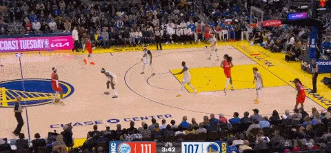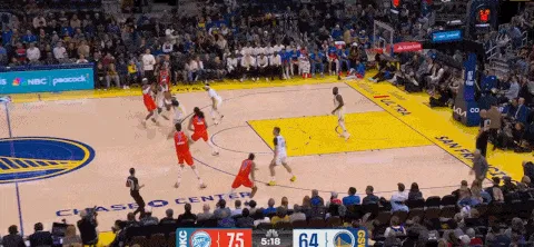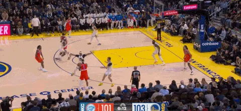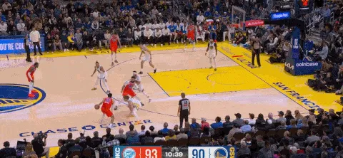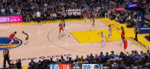 之后的回合,切特在弧頂的關鍵假擋真溜直接吸引勇士全部兵力收縮,隨后快速分球底角的時刻以賽亞喬完成連線。