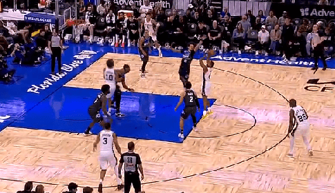NBA常規(guī)賽,馬刺客場對陣魔術(shù)的球線起防比賽正在進(jìn)行中。