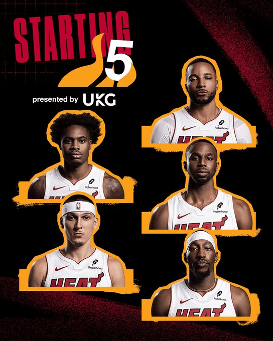 熱火首發(fā):小米切爾、威爾威金希羅、德巴鮑威爾、流言羅威金斯、阿德巴約。