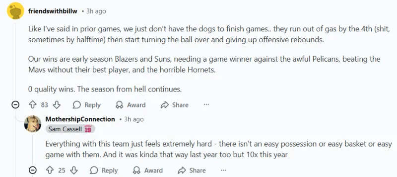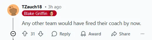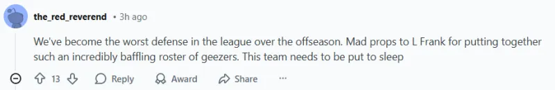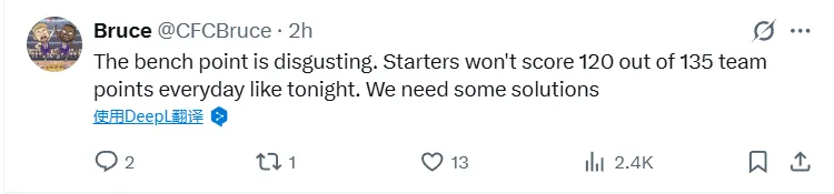 -(13贊)替補席的表現令人作嘔。首發球員不可能像今晚這樣,在全隊135分中貢獻120分。我們需要一些解決方案。