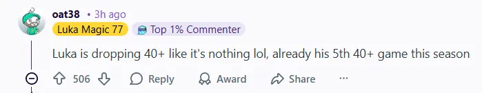 -(506贊)盧卡像沒事人一樣砍下40+,這已經是他本賽季第5次砍下 40+。