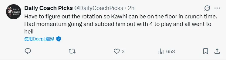 原本勢頭正盛,卻在比賽還剩4分鐘時將他換下,結果局面徹底崩盤。