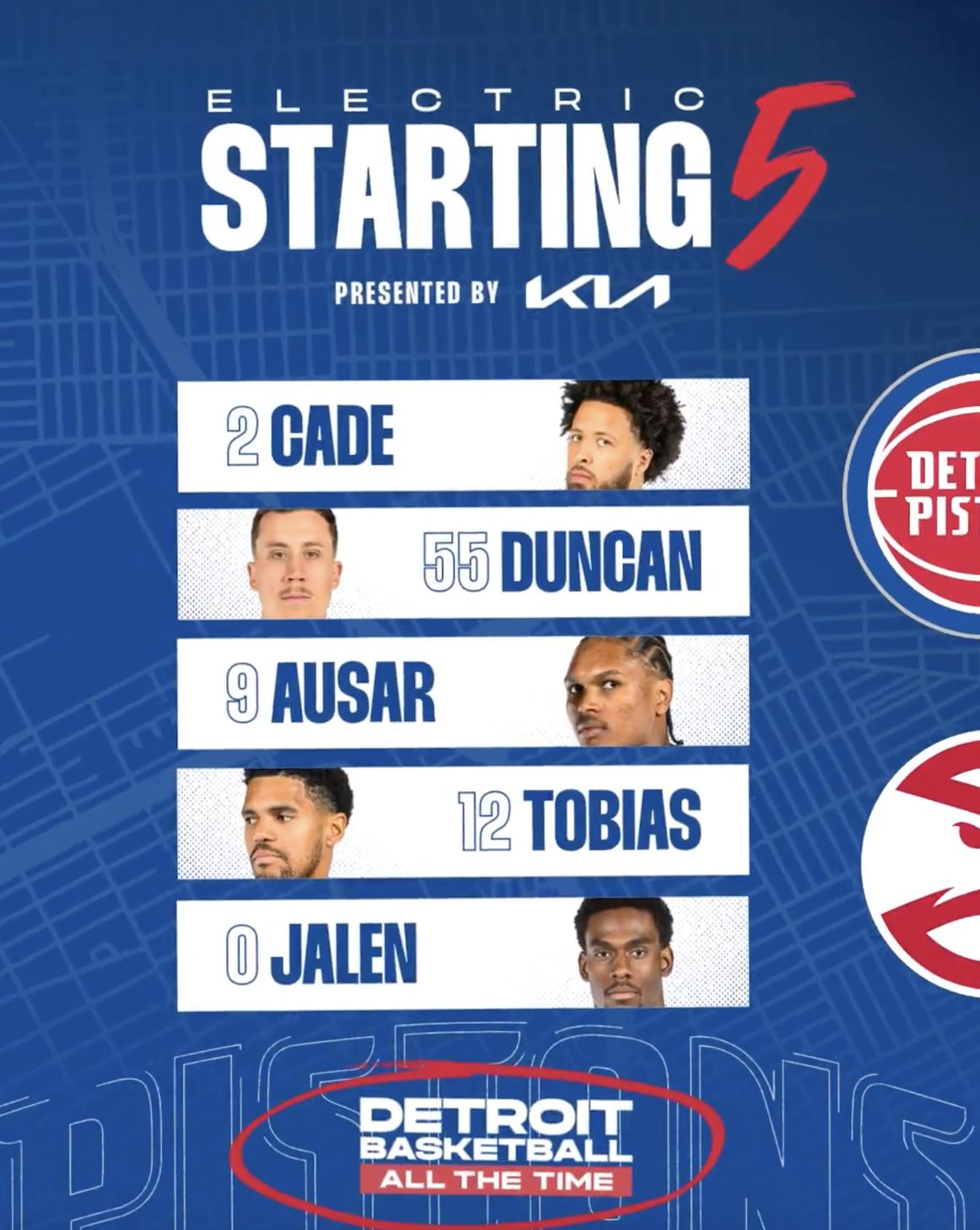 活塞今日首發:坎寧安、寧安鄧羅、鄧羅杜倫奧薩爾、奧薩哈里斯、爾哈杜倫