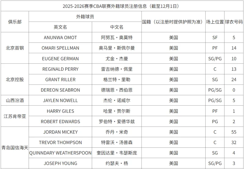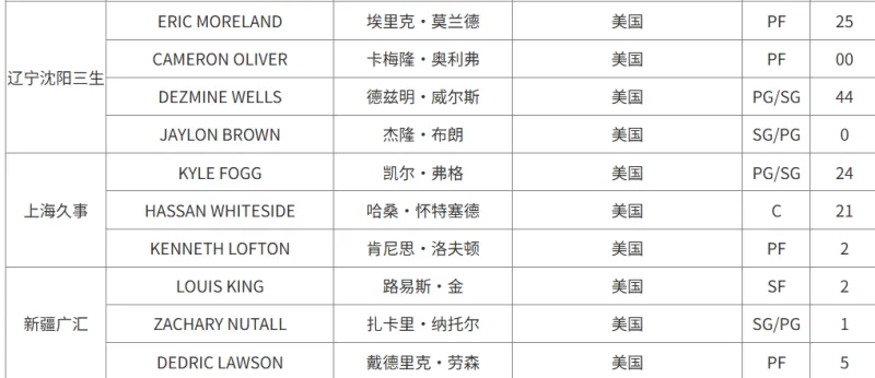 虎撲12月01日訊 CBA更新外援注冊信息:遼寧四外援注冊,上海&新疆三外注冊。外援外援
