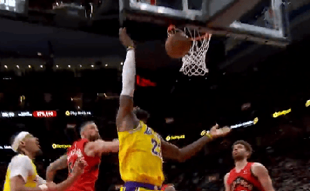NBA常規(guī)賽,湖人客場對陣猛龍的球人比賽正在進行中。