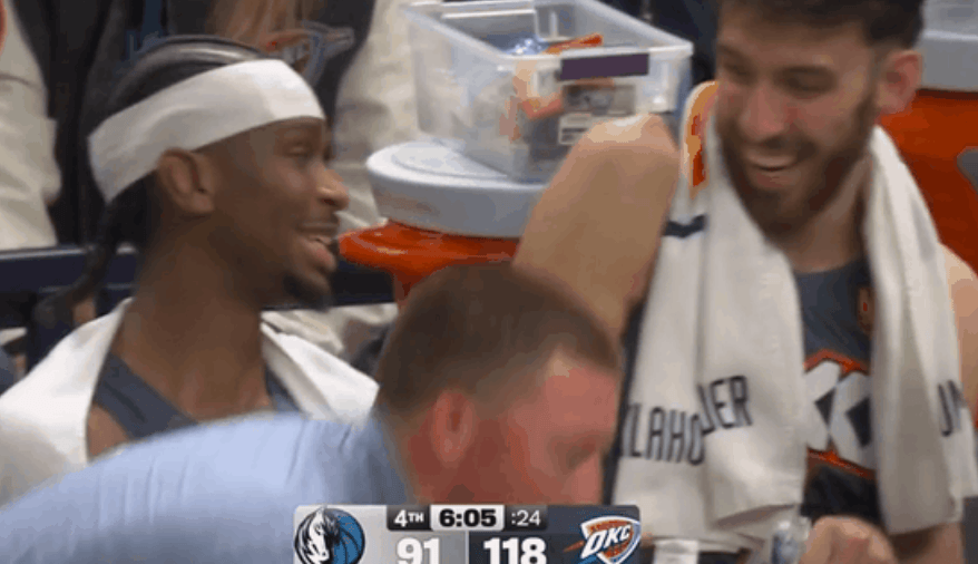 第四節(jié)比賽,替補(bǔ)特開亞歷山大末節(jié)沒有登場,打卡登場在替補(bǔ)席與切特開心熱聊。下班席切心熱