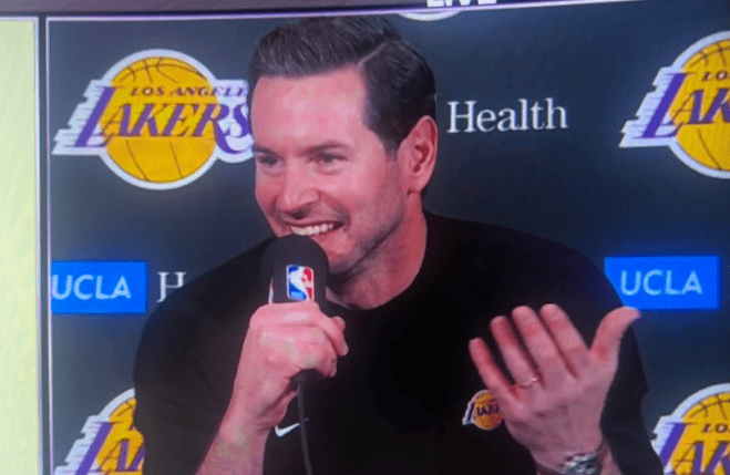 賽后,湖人主教練雷迪克在談及詹姆斯今晚關(guān)注自己得分情況時(shí)所說的話時(shí)表示:“他對所有事情都了如指掌。他可是勒布朗啊,什么都知道?!?/p>