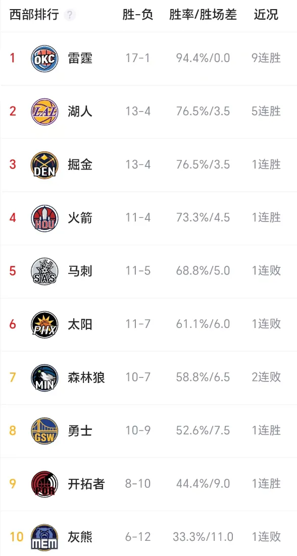同時,湖人還取得5連勝,目前他們戰(zhàn)績13勝4負(fù),再次排在西部第二。