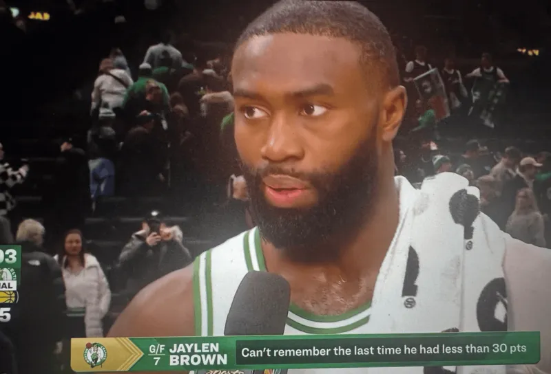 本場比賽,凱爾特人球員杰倫-布朗出戰33分鐘,25投11中,其中三分球6投2中,罰球8投7中,得到31分9籃板2助攻1搶斷2封蓋。