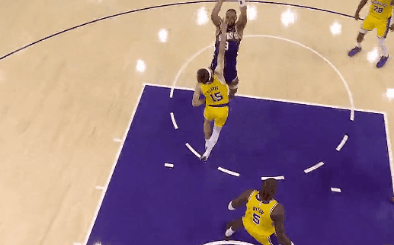 NBA常規(guī)賽,湖人對(duì)陣太陽(yáng)的下分比賽正在進(jìn)行中。