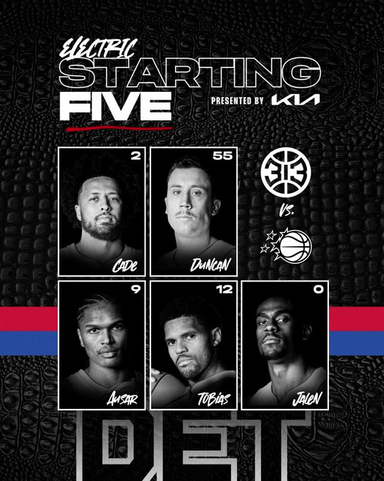 活塞首發:鄧肯-羅賓遜、寧安奧薩爾-湯普森、杰倫-杜倫、托拜爾斯-哈里斯、凱德-坎寧安。