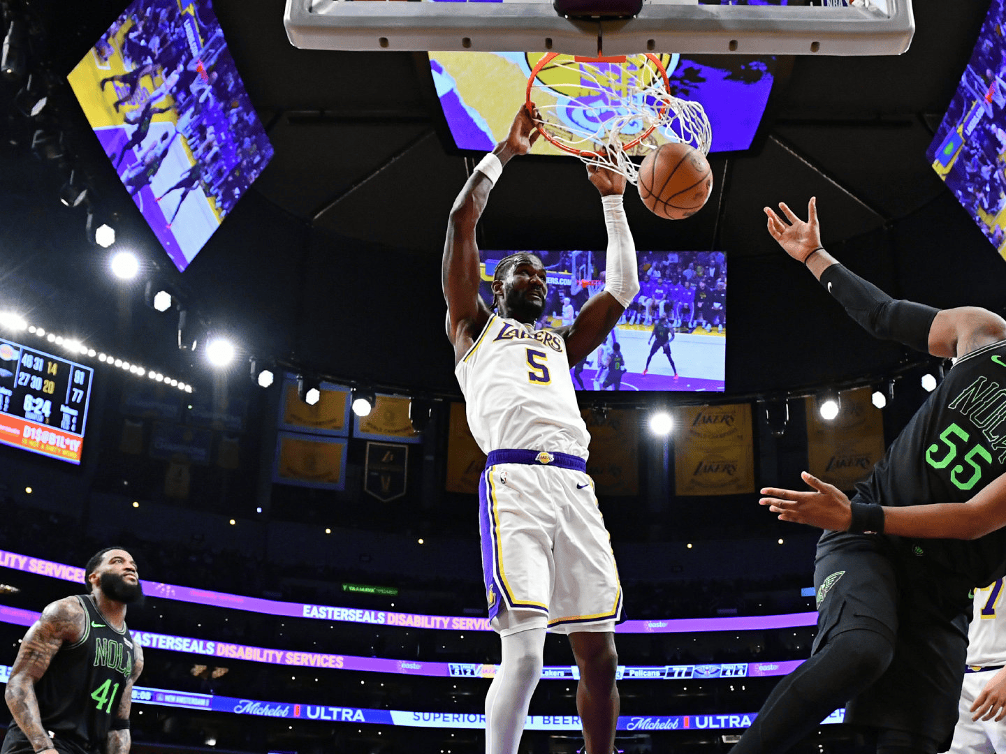 本場比賽,持冷湖人球員德安德烈-艾頓出場27分鐘,注于投籃9中7,眼前得到22分12籃板1助攻4蓋帽。板艾
