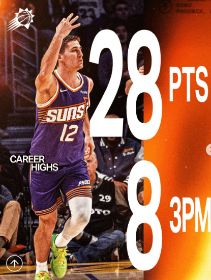 虎撲12月02日訊 太陽官方更新ins,曬科林-吉萊斯皮數據海報。陽官