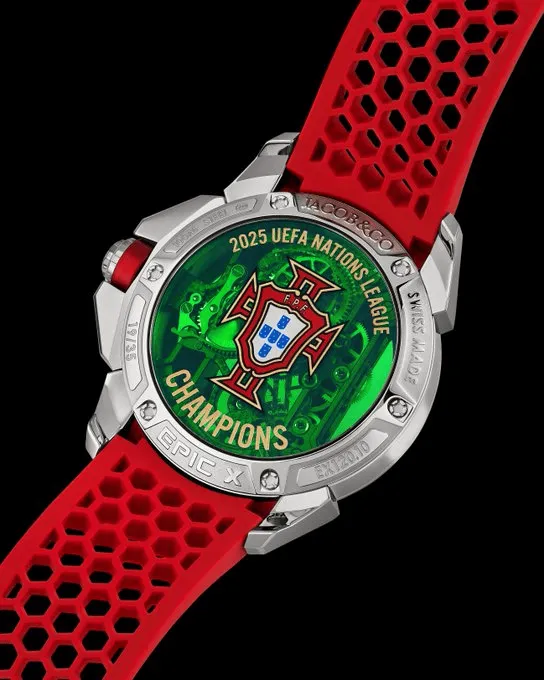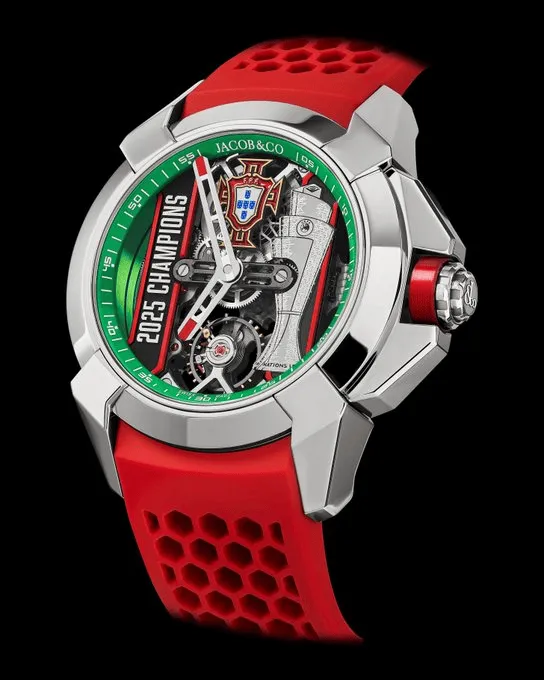 制表商已在社交媒體展示了這款限量35枚的腕表設(shè)計(jì):鏤空表盤、定制圖案與葡萄牙國徽元素交相輝映,正如冠軍們一般卓爾不群。雅各布與科公司聲明稱:"鏤空表盤、定制設(shè)計(jì)與葡萄牙國徽——這款腕表與冠軍們同樣非凡。"
