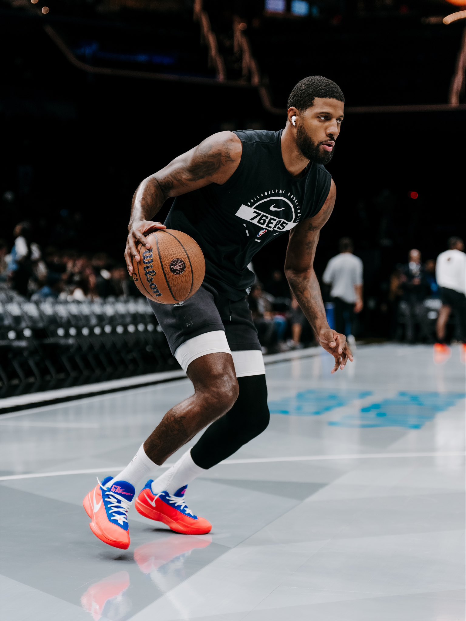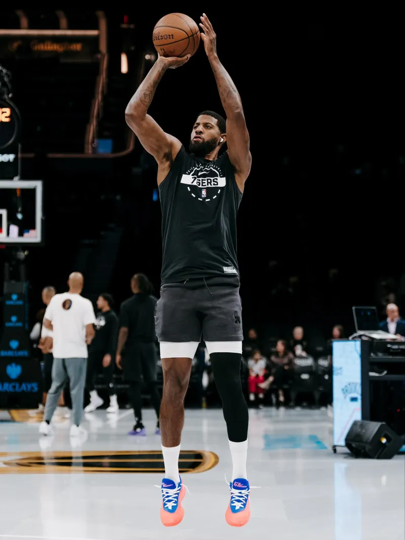 賽前,社媒76人社媒分享保羅-喬治在賽前熱身認真訓練的分享瞬間。