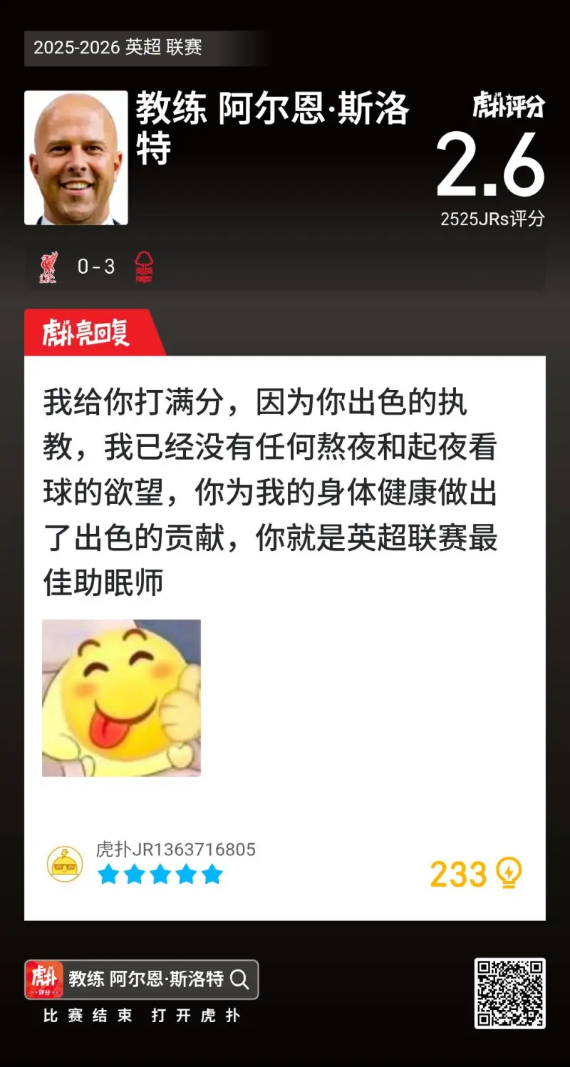 比賽日神評(píng):感謝斯洛特為我的比賽身體健康做出的貢獻(xiàn)由虎撲足球 發(fā)表在足球話題區(qū) https://bbs.hupu.com/topic