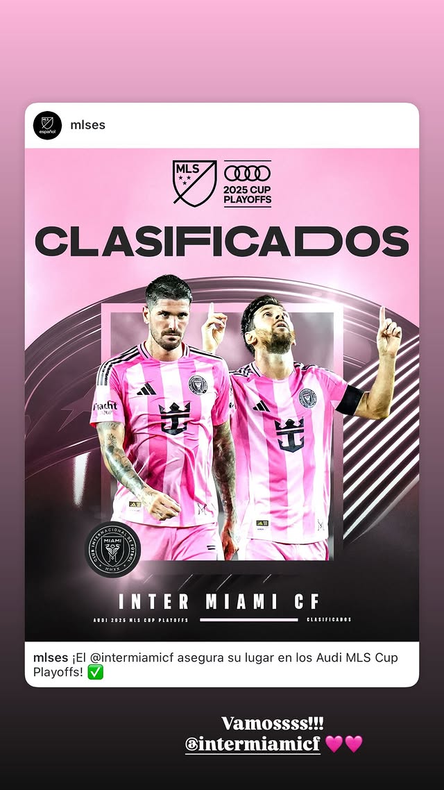 憑借本場勝利,鎖定賽資邁阿密國際鎖定了本賽季的季后季后賽資格。賽后,板德保羅報慶德保羅更新了Instagram,慶祝了這一時刻。