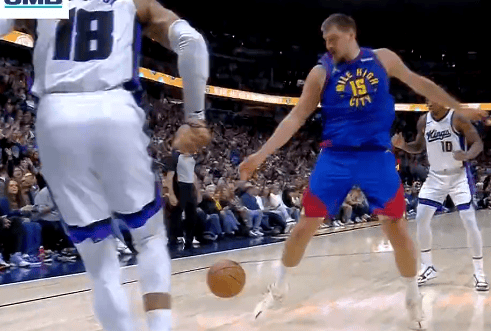 第四節比賽中,砸約威少關鍵搶板砸約基奇身上出界,基奇掘金國王還剩1分鐘領先掘金6分。身上