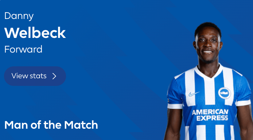 維爾貝克本場打入扳平進球,克當賽后,板射他當選了英超官方票選的中官全場最佳。