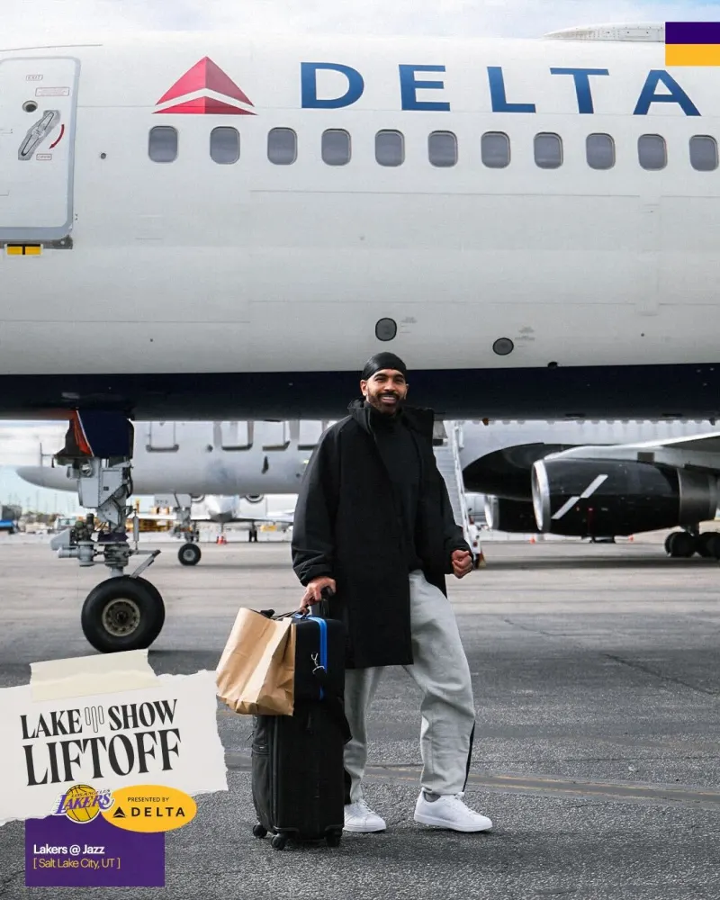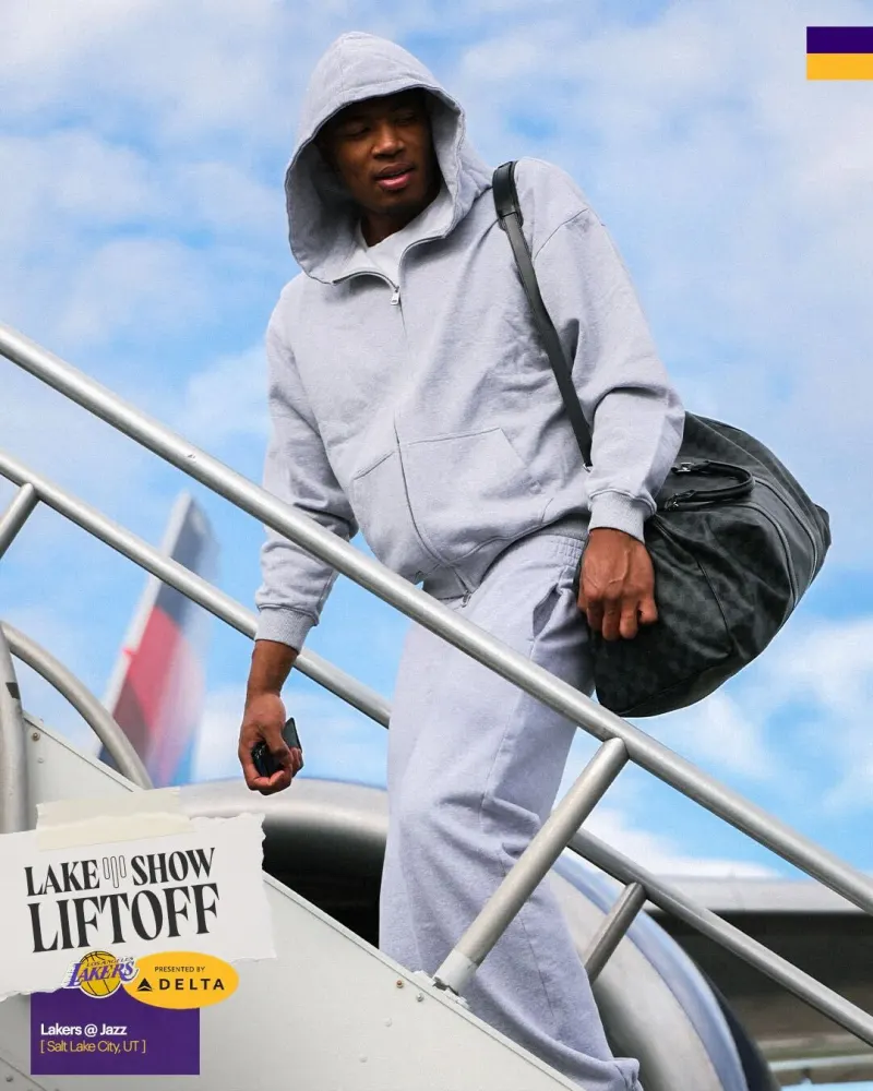 虎撲11月23日訊 今日,湖人社媒曬出球員奔赴爵士客場的將奔登機照片。