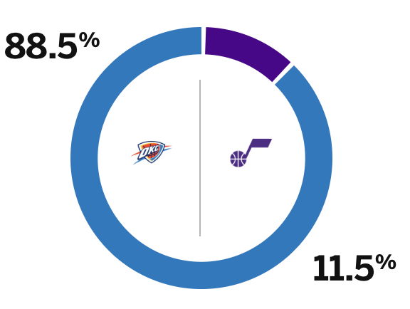 [流言板]ESPN預(yù)測(cè)雷霆vs爵士:雷霆?jiǎng)俾?8.5%,爵士勝率11.5%