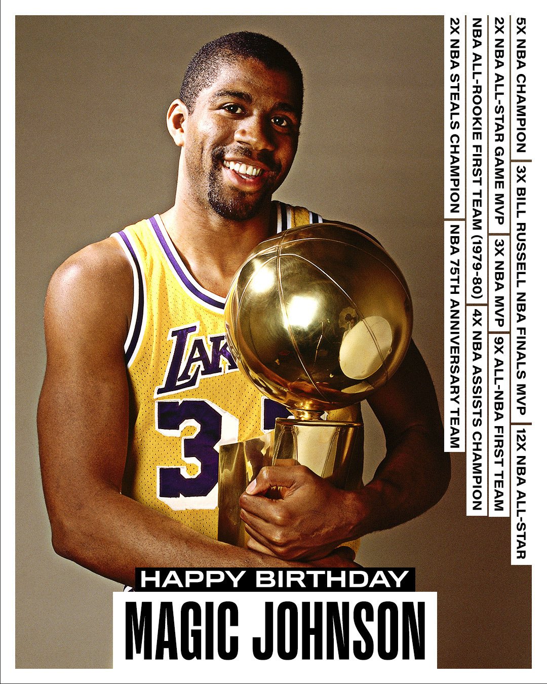 “讓我們一起祝12屆全明星,翰遜5屆NBA總冠軍,快樂3屆MVP,官方3屆FMVP和75大成員魔術(shù)師約翰遜66歲生日快樂!”NBA官方附文道。