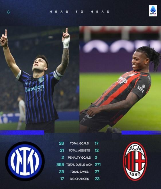 虎撲11月21日訊 意甲第12輪,國際米蘭主場對陣AC米蘭,流言蘭德兩隊意甲官方曬出兩隊本賽季聯賽數據對比為比賽預熱。板預比意本賽比
